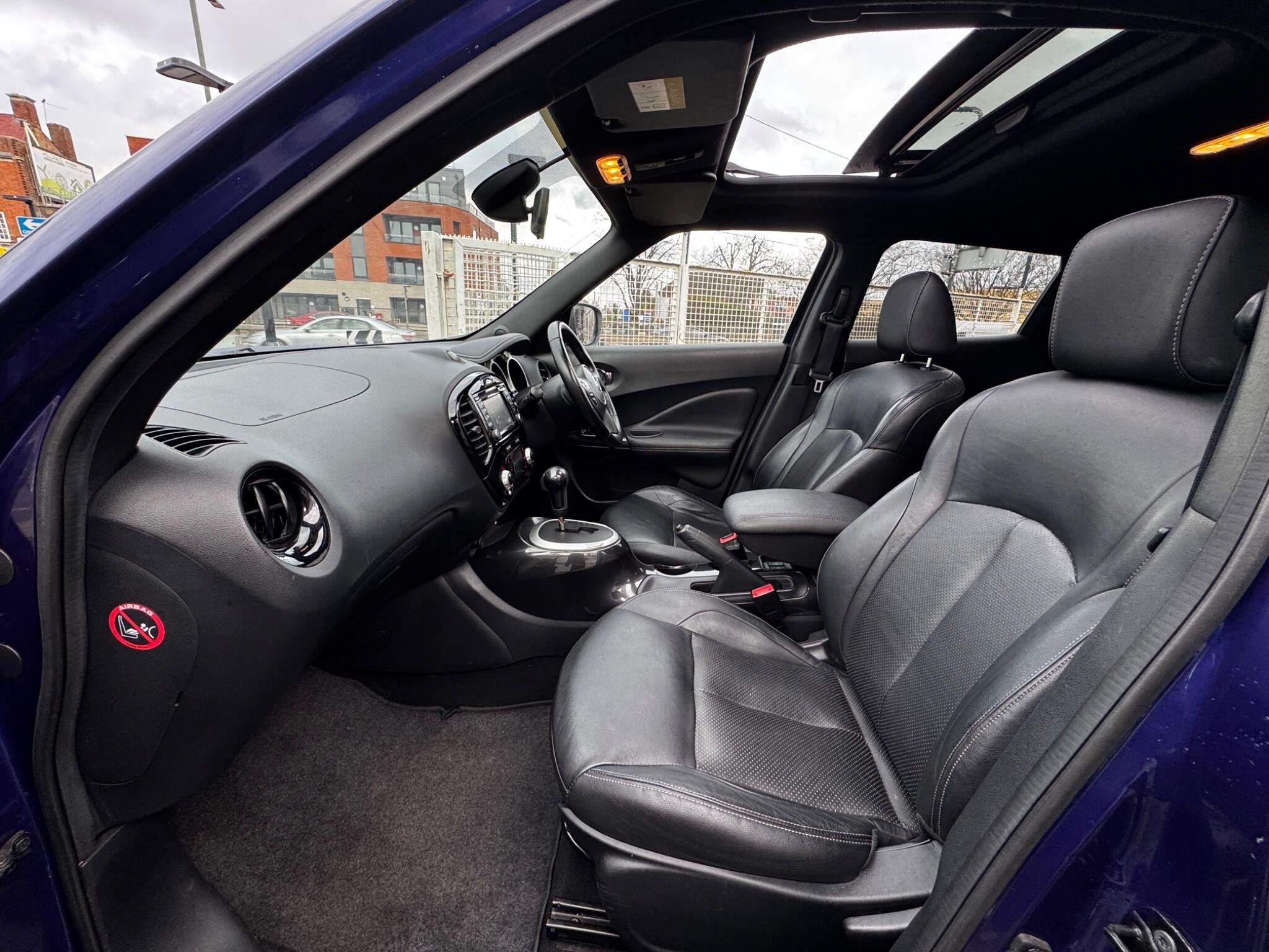 This 2015 Nissan Juke DIG-T Tekna is a standout example with exceptionally low mileage for its age, having covered just 38,000 miles. This particular model boasts a 1.6 litre petrol engine paired with a four wheel drive system, ensuring capable performance in various conditions. As a Euro 6 compliant vehicle, it meets modern emissions standards. The Tekna trim level comes well equipped, featuring a sophisticated Torque Vectoring System for enhanced handling, a colour reversing camera with rear parking assistance for easier manoeuvring, and heated front seats for added comfort. Convenience is further elevated by the Intelligent Key system, offering keyless entry and a push button start, alongside Bluetooth integration for seamless telephone connectivity. A beautiful sun roof.